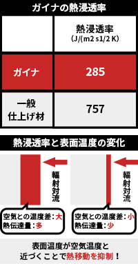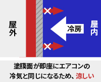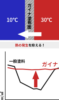 ガイナの塗膜は周辺の温度変化に適応する特性を持っているため、ガイナを塗布した塗膜面が室温にあわせて同じ温度に近づきます。