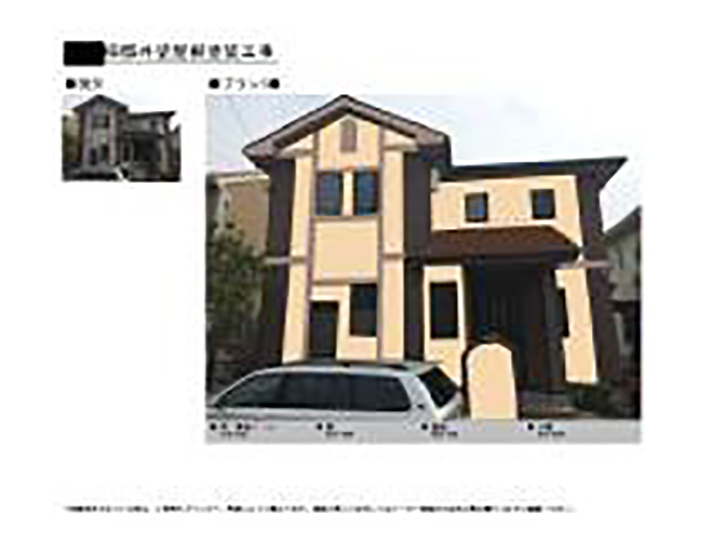 | 使用商材・建材 | 外壁:スーパームキコート(超耐候性無機ハイブリッド塗料/ジャパンカーボライン社) 化粧壁:スーパームキコートクリヤー(超耐候性無機ハイブリッドクリヤー塗料/ジャパンカーボライン社) 屋根:タフグロスコート工法(2液型着色浸透シリコン強化プライマー+特殊クリヤーコーティング/オリエンタル塗料工業) 付帯部:4フッ化フッ素(2液型弱溶剤/フッ素塗料) 目地&開口部:オートンイクシード(超高耐久・高耐候シーリング材/オート化学工業) |