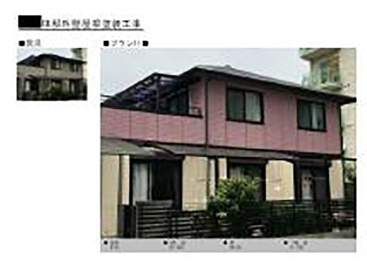 | 使用商材・建材 | 外壁:断熱無機ガイナ(特殊セラミック塗料/日進産業) 屋根:断熱無機ガイナ(特殊セラミック塗料/日進産業) 付帯部:4フッ化フッ素(2液型弱溶剤/フッ素塗料) 目地&開口部:オートンイクシード(超高耐久・高耐候シーリング材/オート化学工業) |