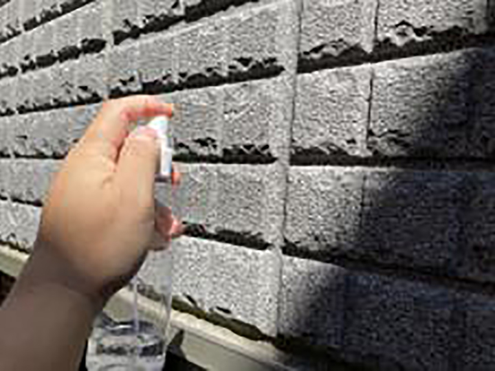 外壁に水をかけて、含水試験を行いました。